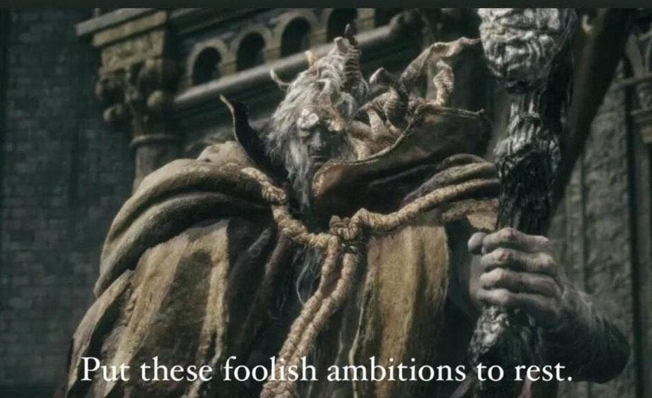 Same with LLMs. People say they don’t get the same results others rave about, and think its baseless hype.[^1] Unlike Elden Ring, it's harder to tell what is skill and what isn't. Elden Ring is difficult, predictable, and fair. LLMs are a non-deterministic blackbox. The same prompt can give different answers, and it can be unclear why. I still don't know how to tell the difference between user error and model strangeness.