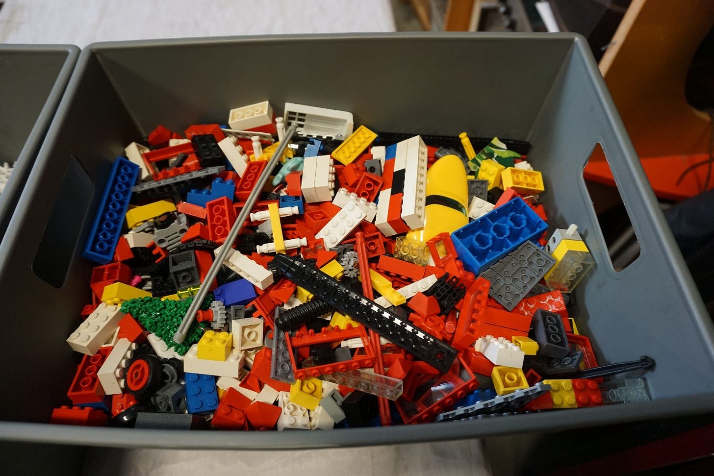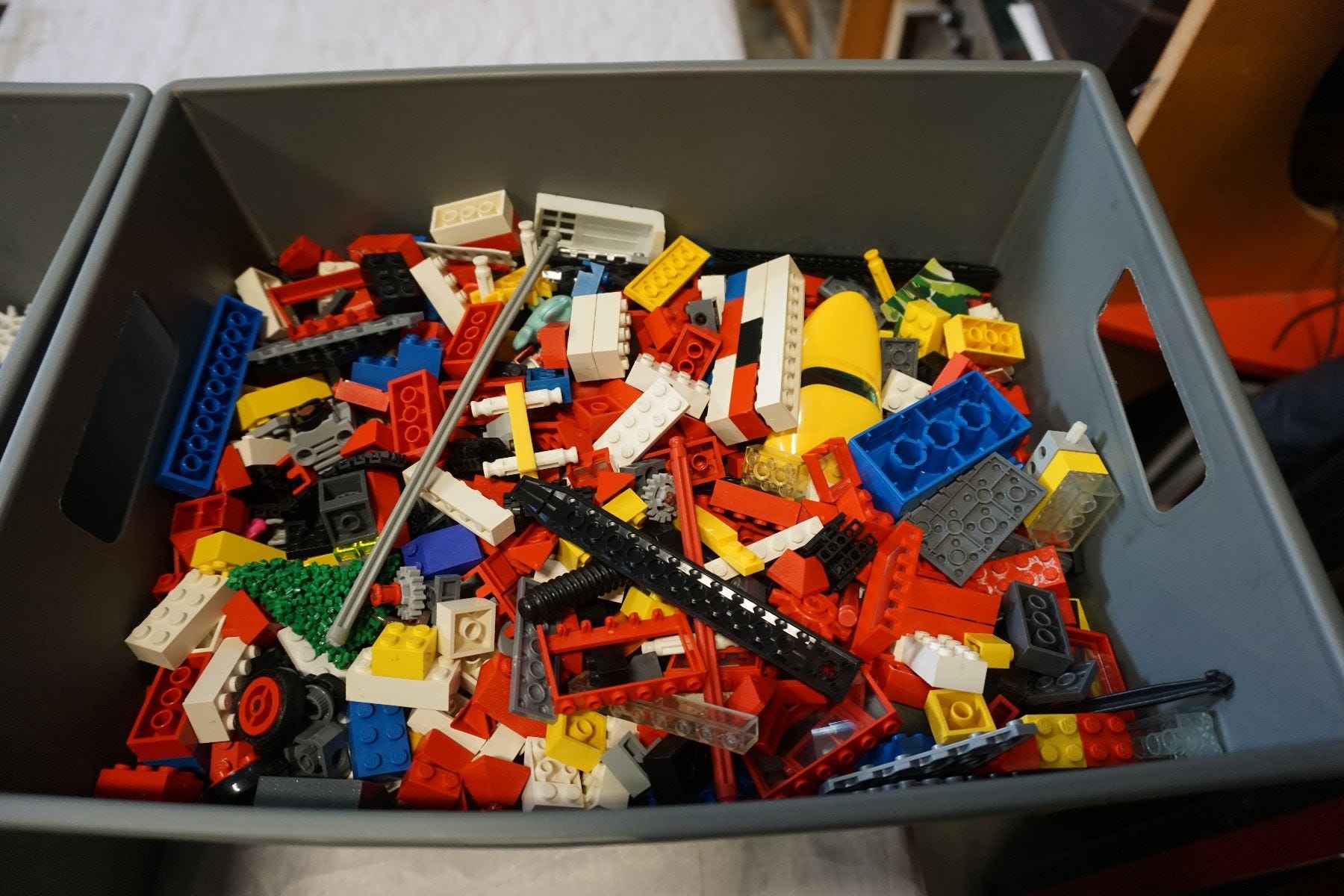 A bin of building blocks