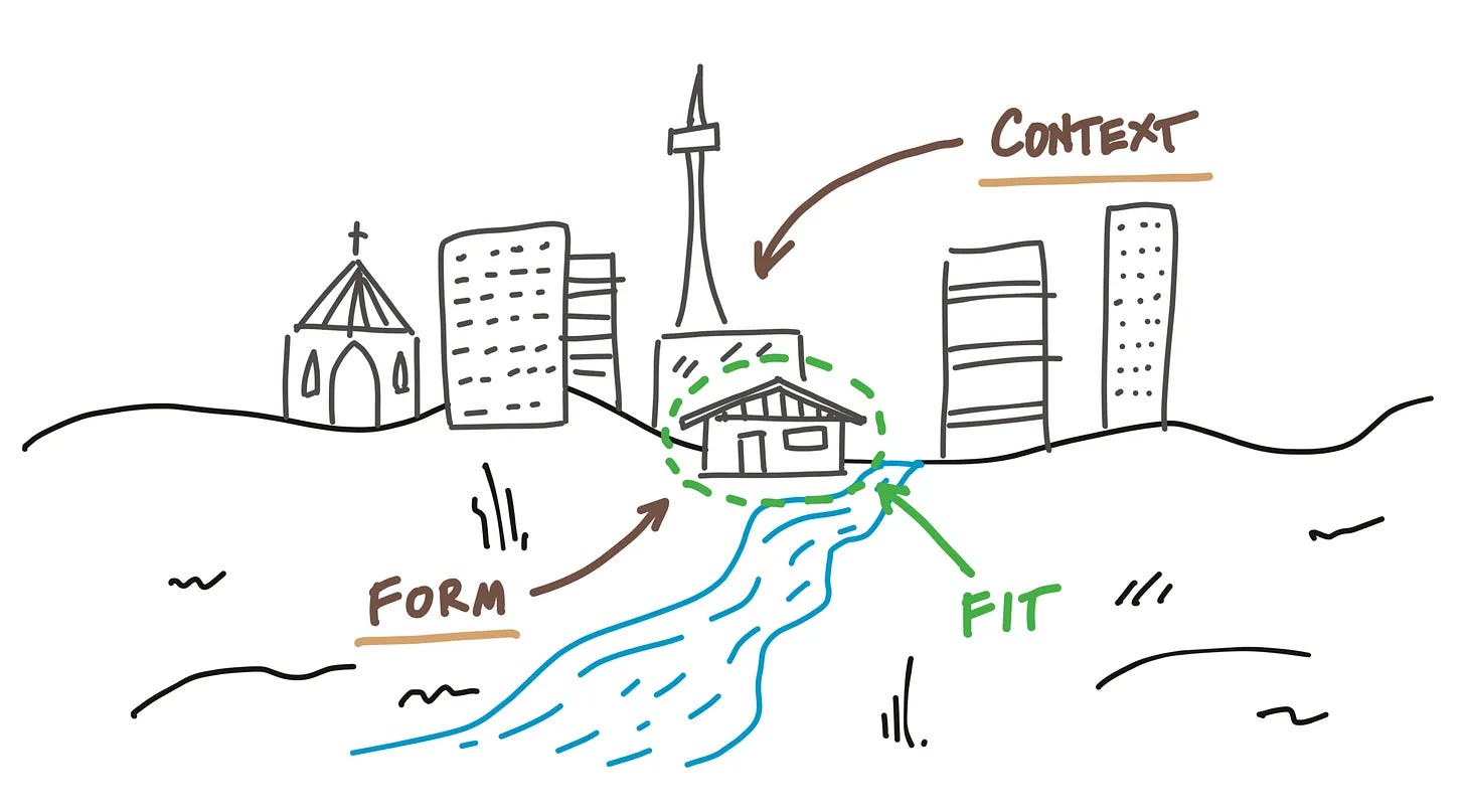 Taste isn’t about deciding what’s “good” or what’s “bad.” It’s about deciding what is coherent and what isn’t. In his 1964 work Notes on the Synthesis of Form, Christopher Alexander describes a system of relationships he calls the “ensemble” of form, context, and fitness between them. Form is the shape and structure of a product. Context is the environment in which the product is used. Fitness describes how the product matches the intended function within its context.